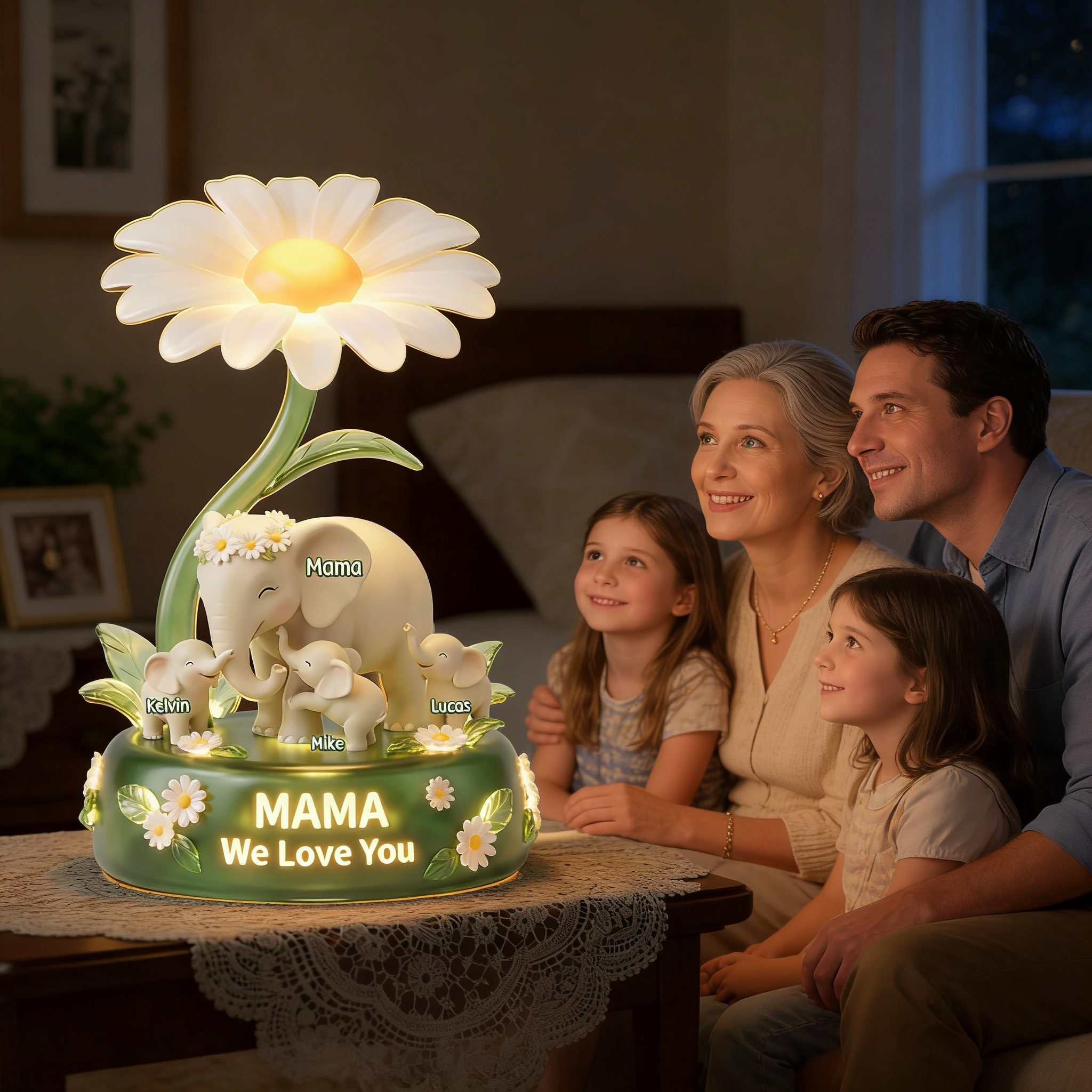Elephant Mom Acrylic Light Box - Personalized Gifts For Mother and Grandma