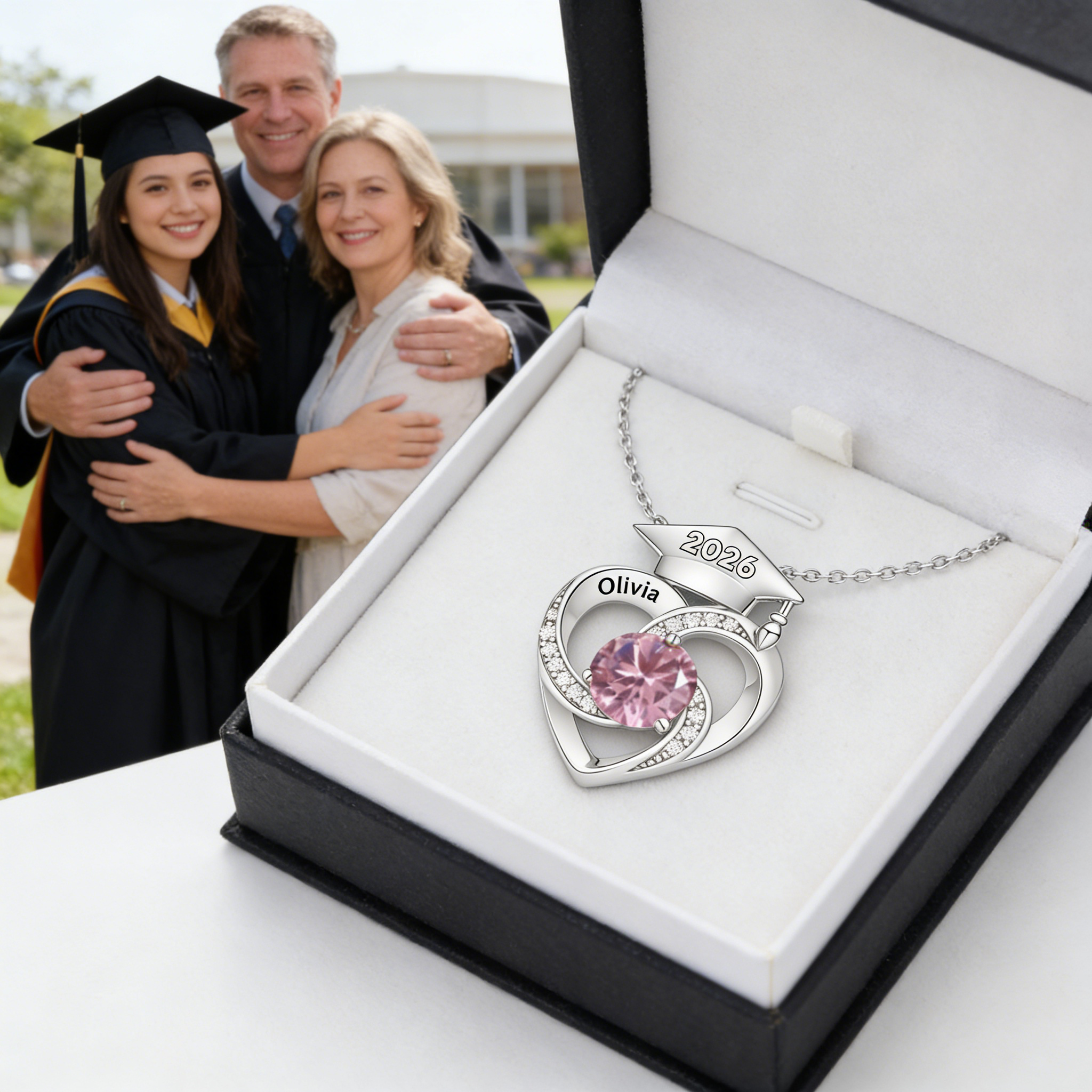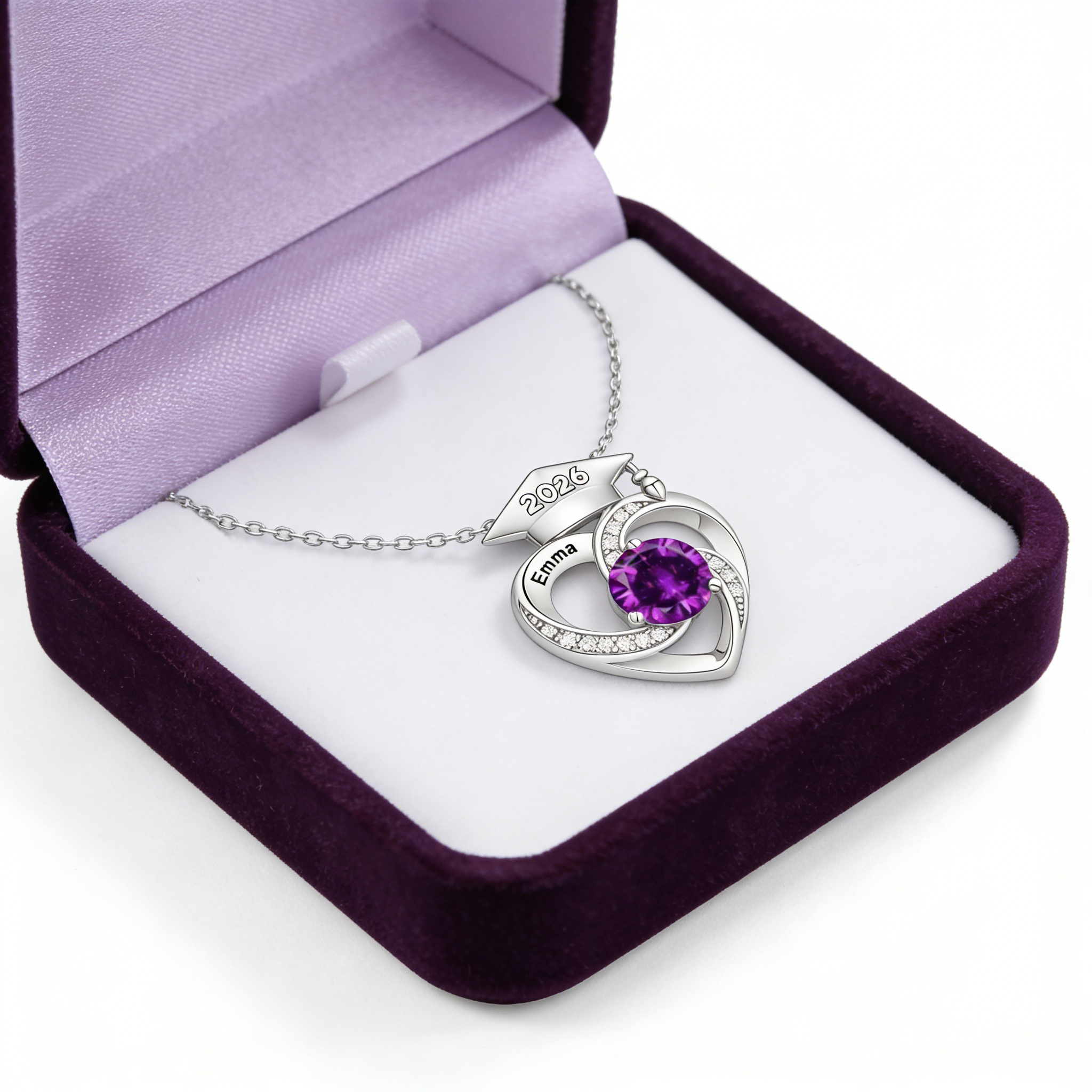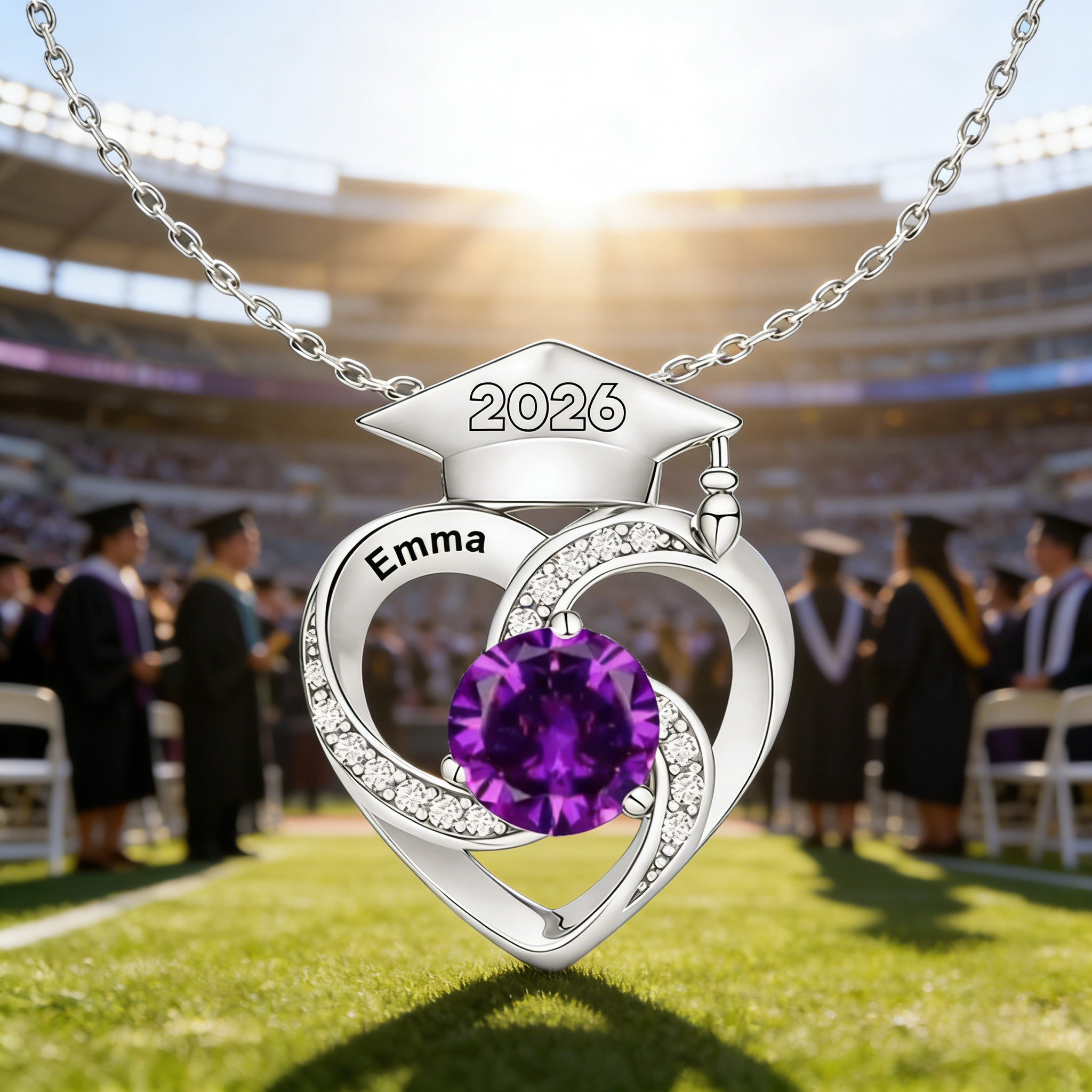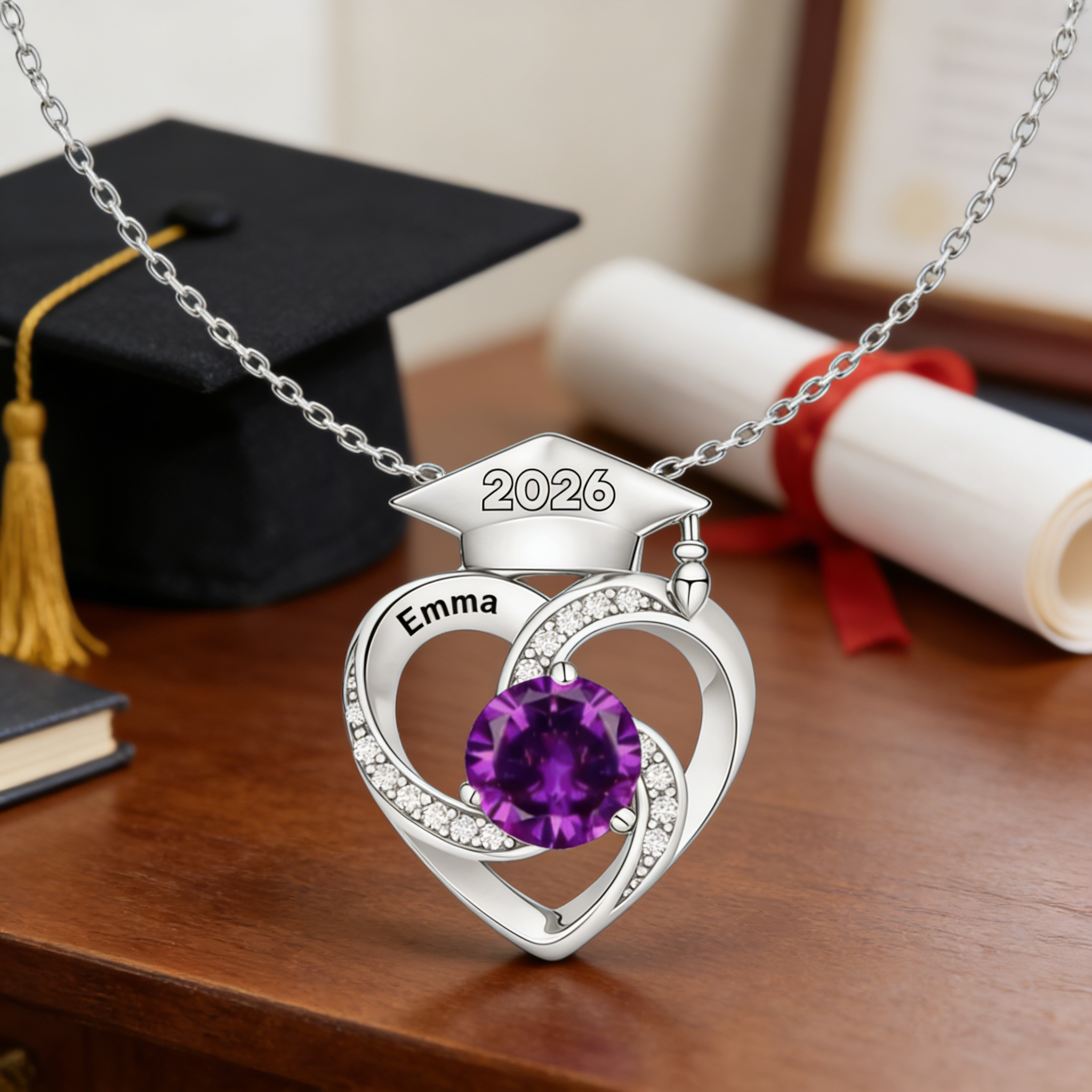 Personalized Graduation Cap Birthstone Necklace,Class of 2026