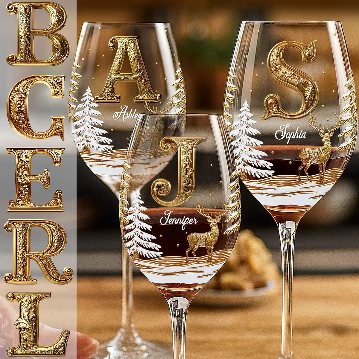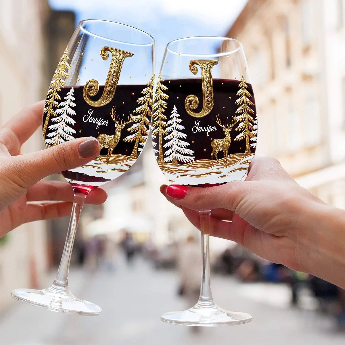 Merry Christmas - Personalized Family Wine Glass With Long Stem