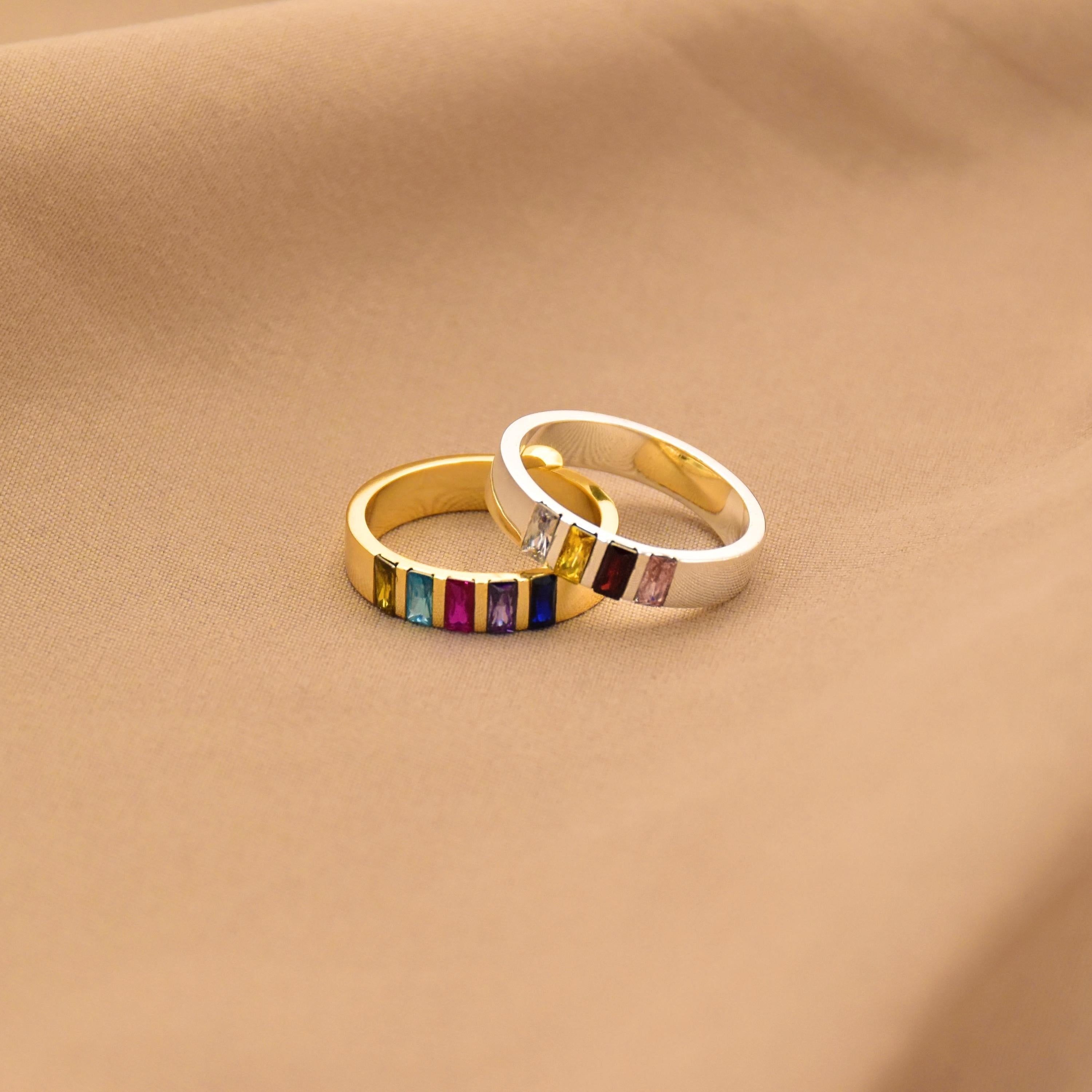 🎁This birthstone ring features a tiny colored cubic zirconia.