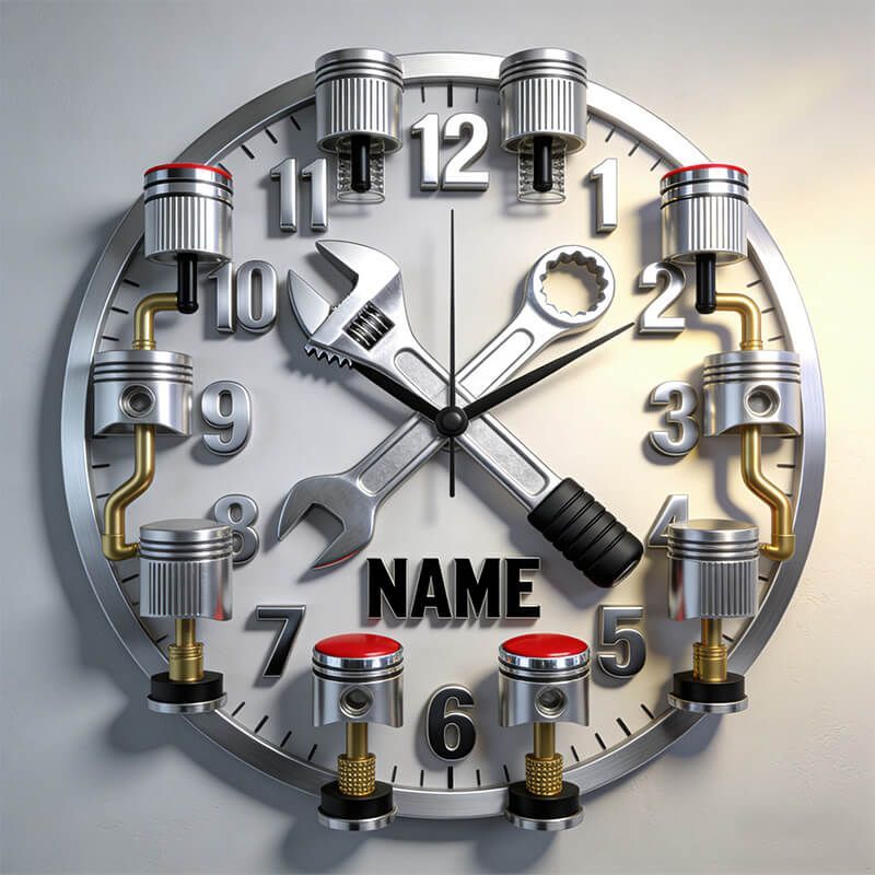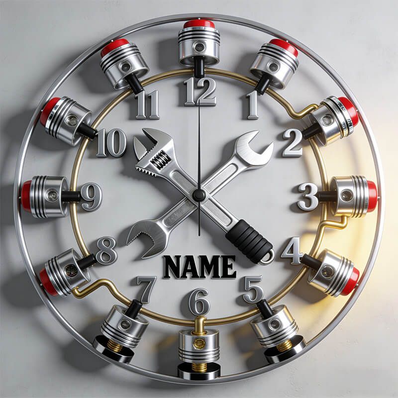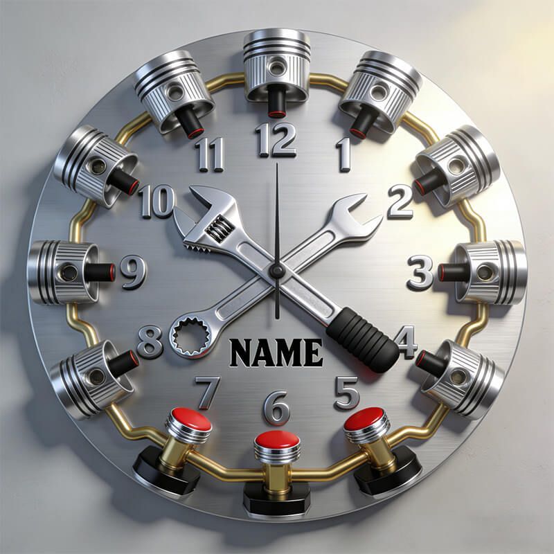Personalized Heavy-Duty Wrench & Piston Clock — Where Raw Power Meets Precision Time