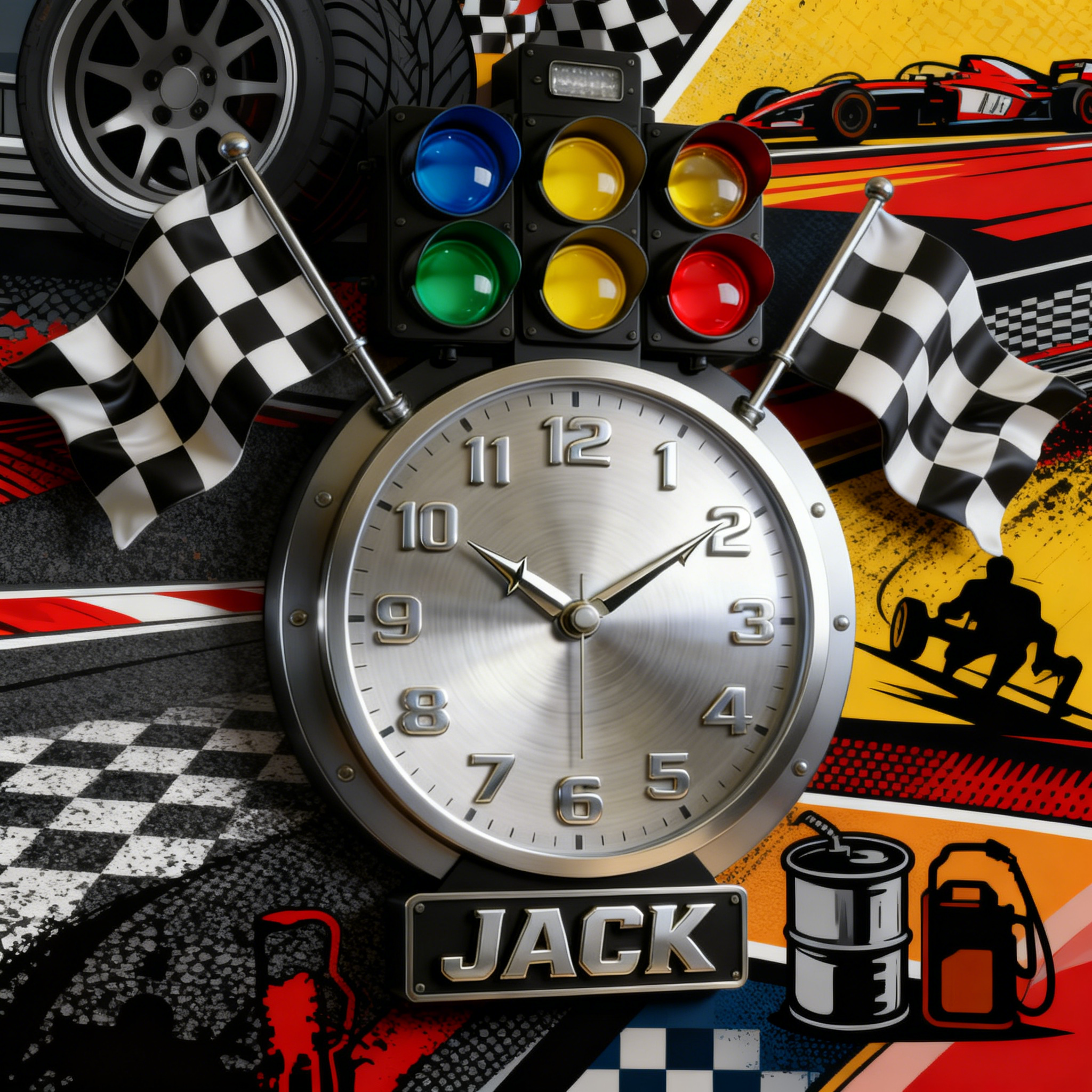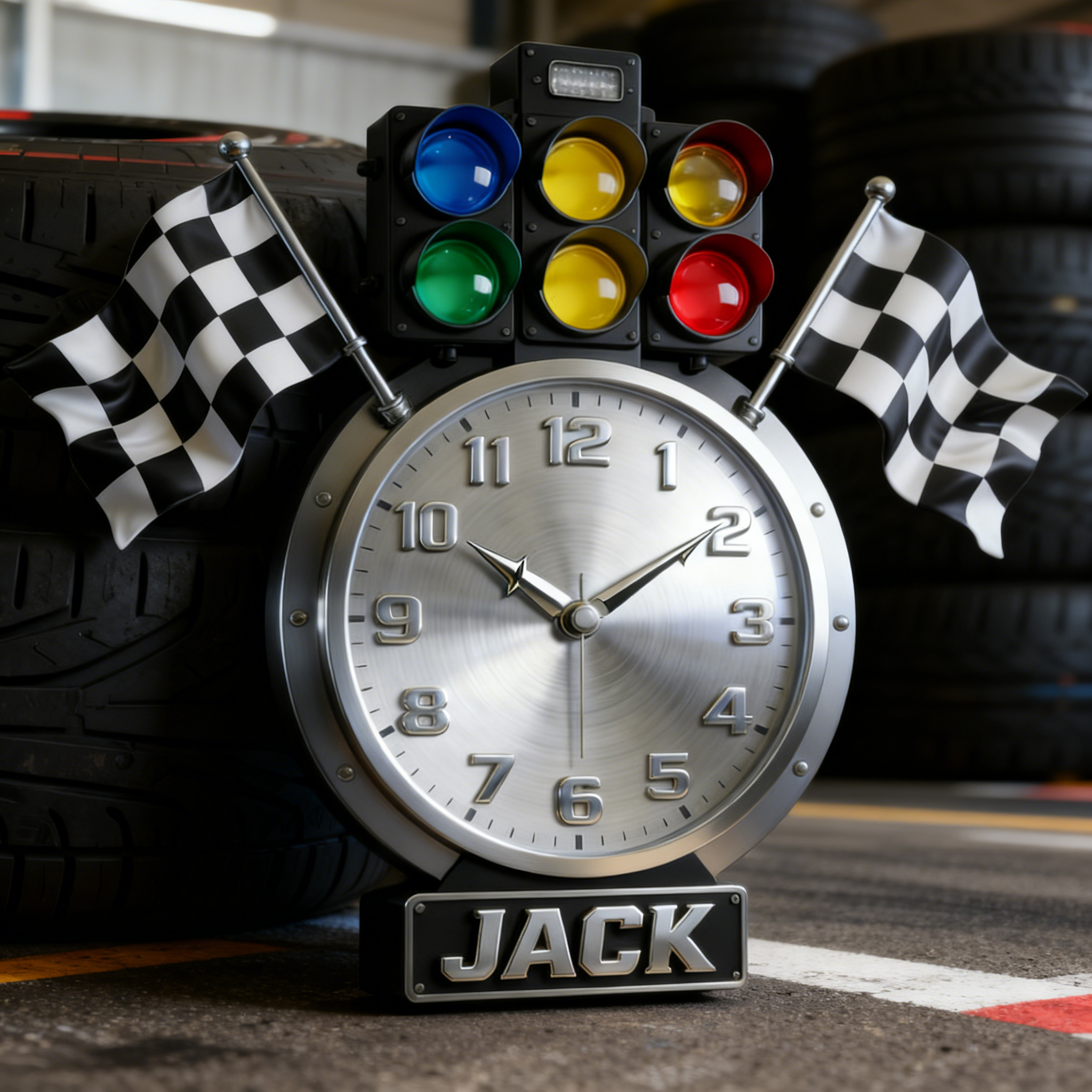 Personalized Rally Start Light Wall Clock – Ready, Set, Glow!