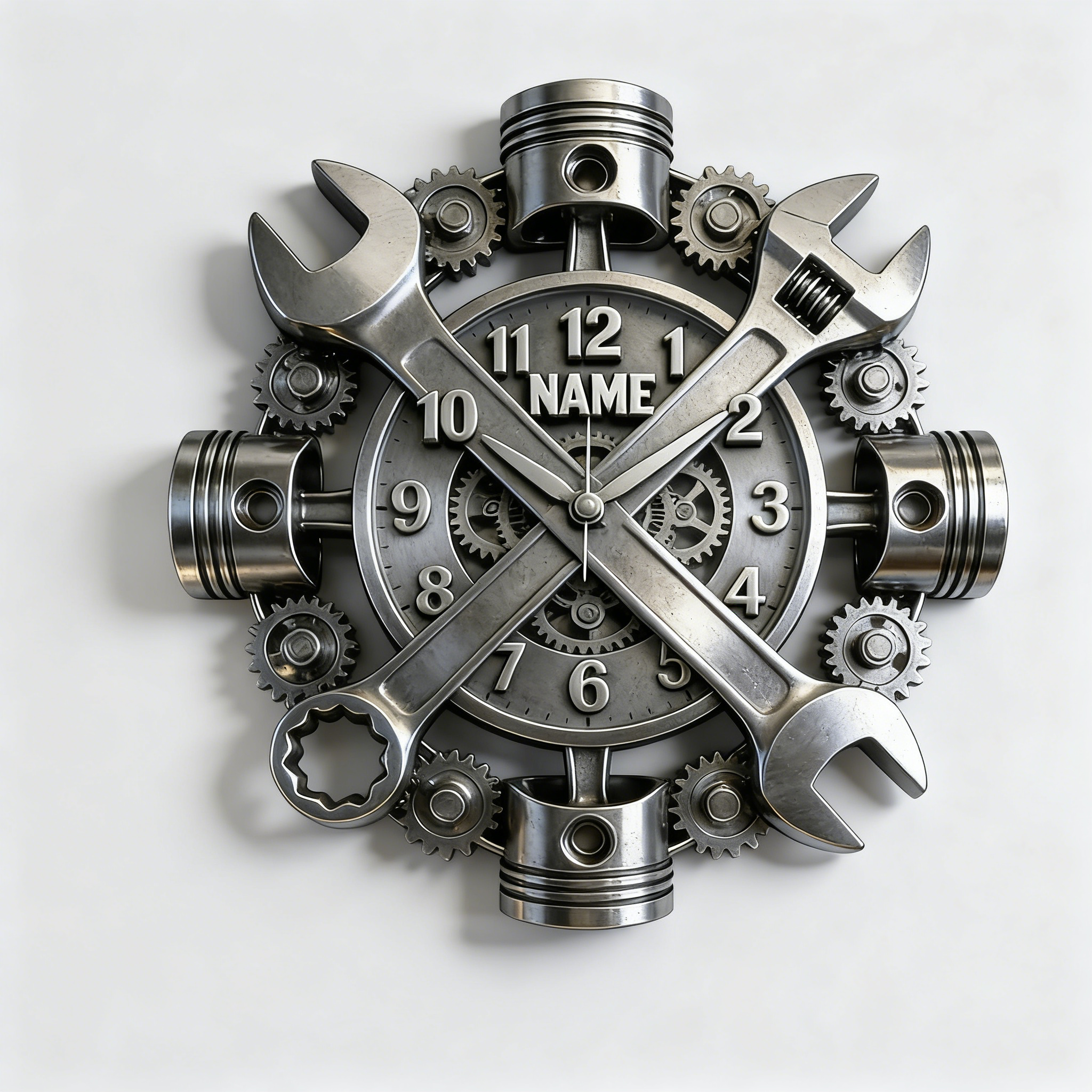 Personalized Wrench & Piston Cylinder Clock – Precision Engineered for Time