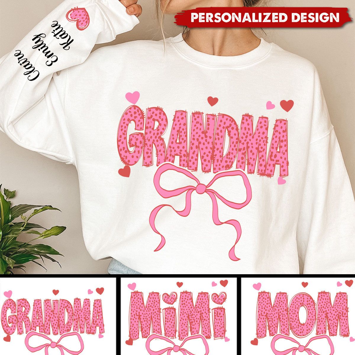 Personalized Grandma & Kids Pink Bow Sweatshirt-Gift For Grandma Nana