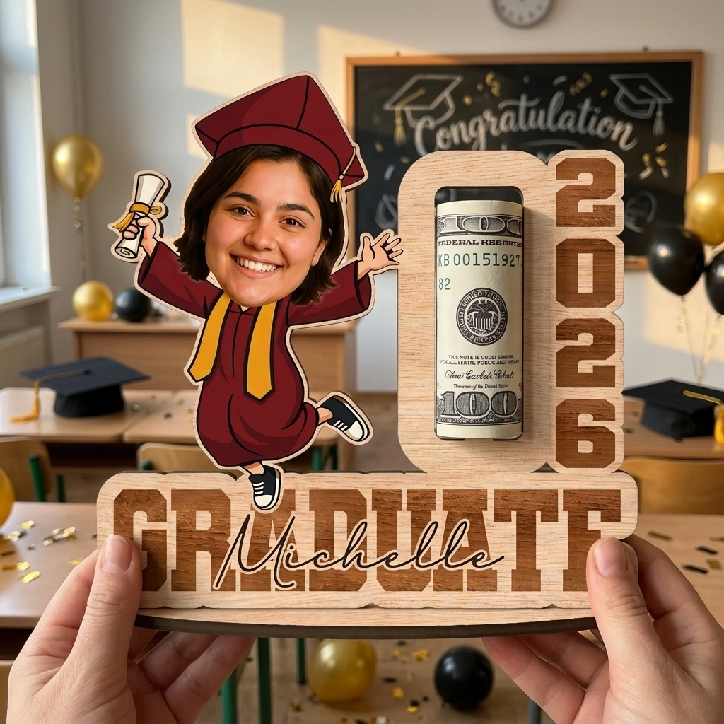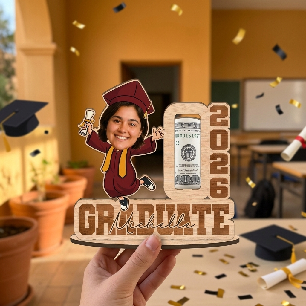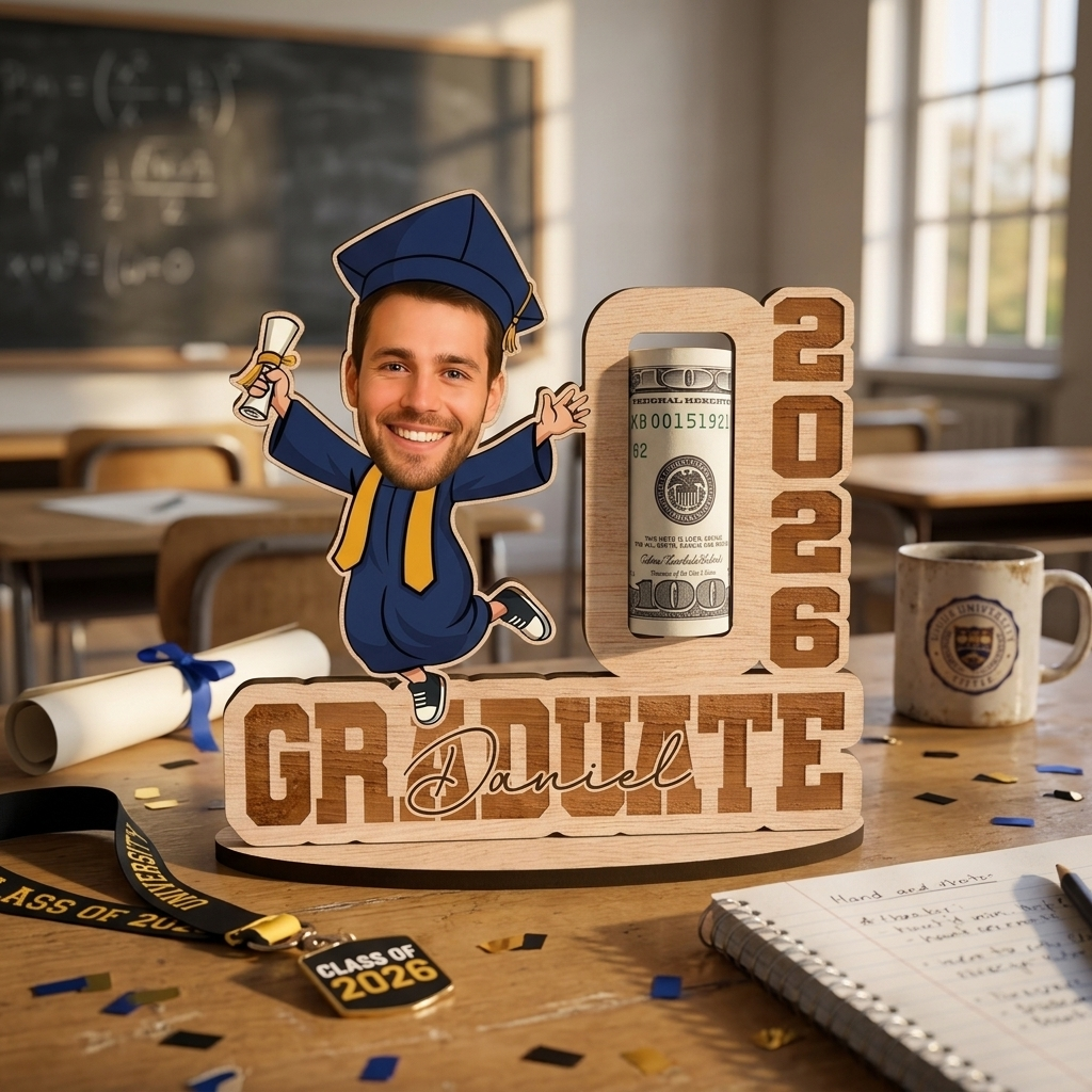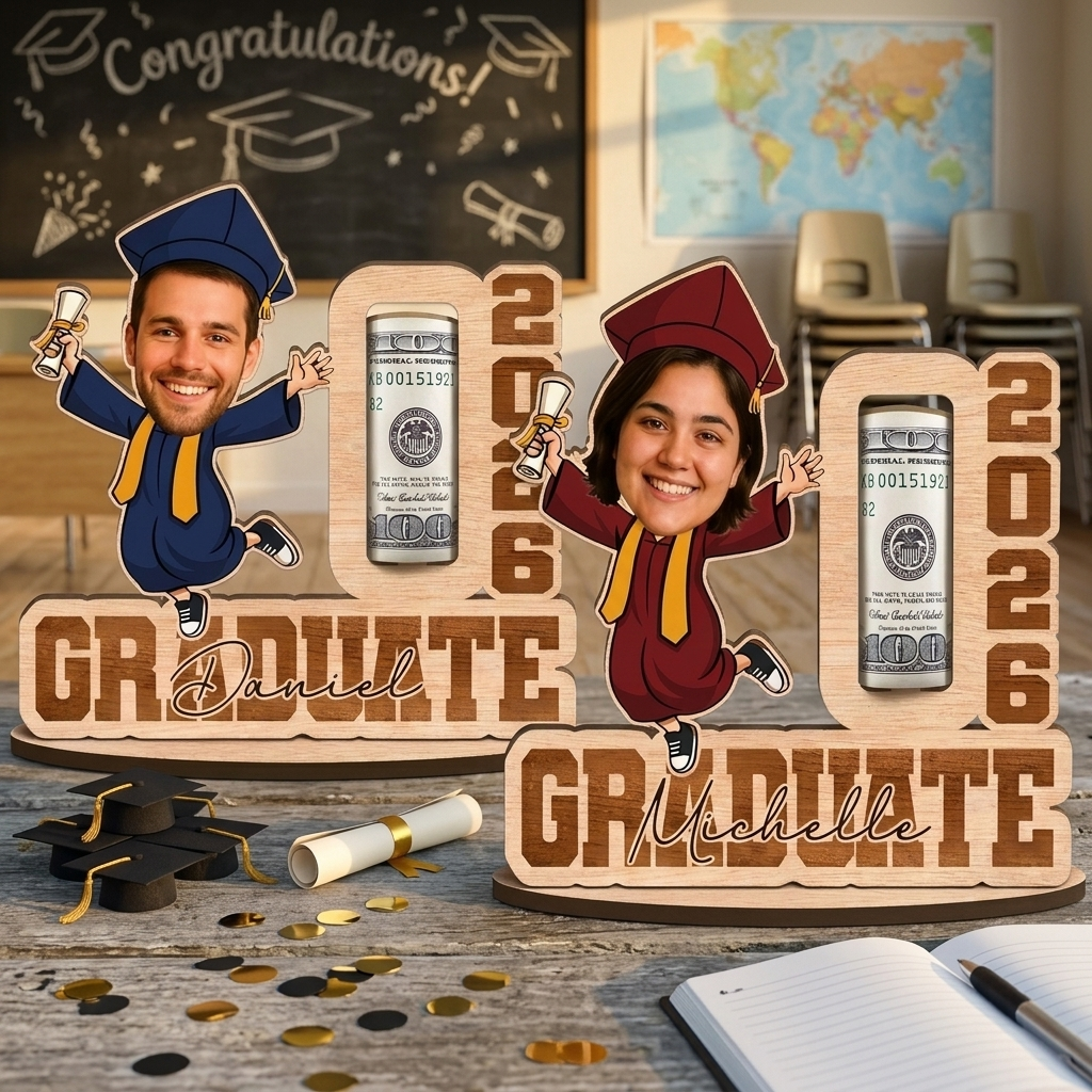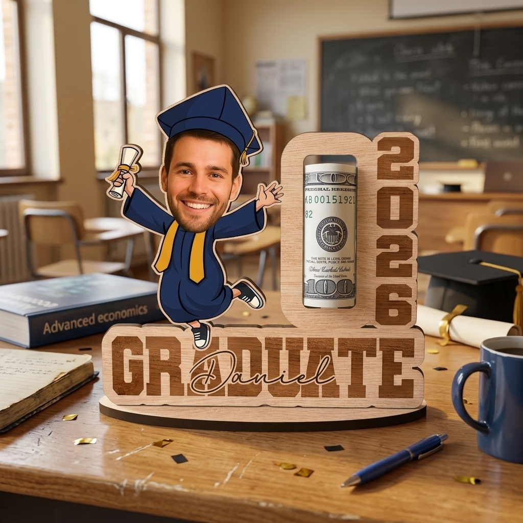 Add your graduate’s face and name for a one-of-a-kind keepsake.