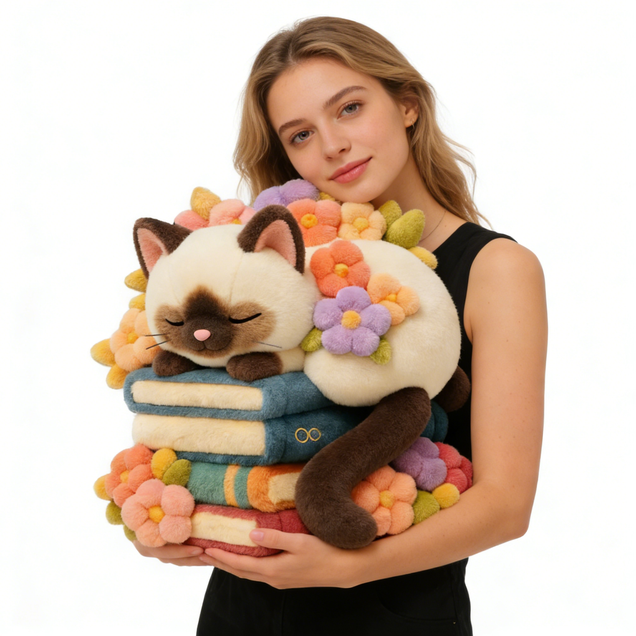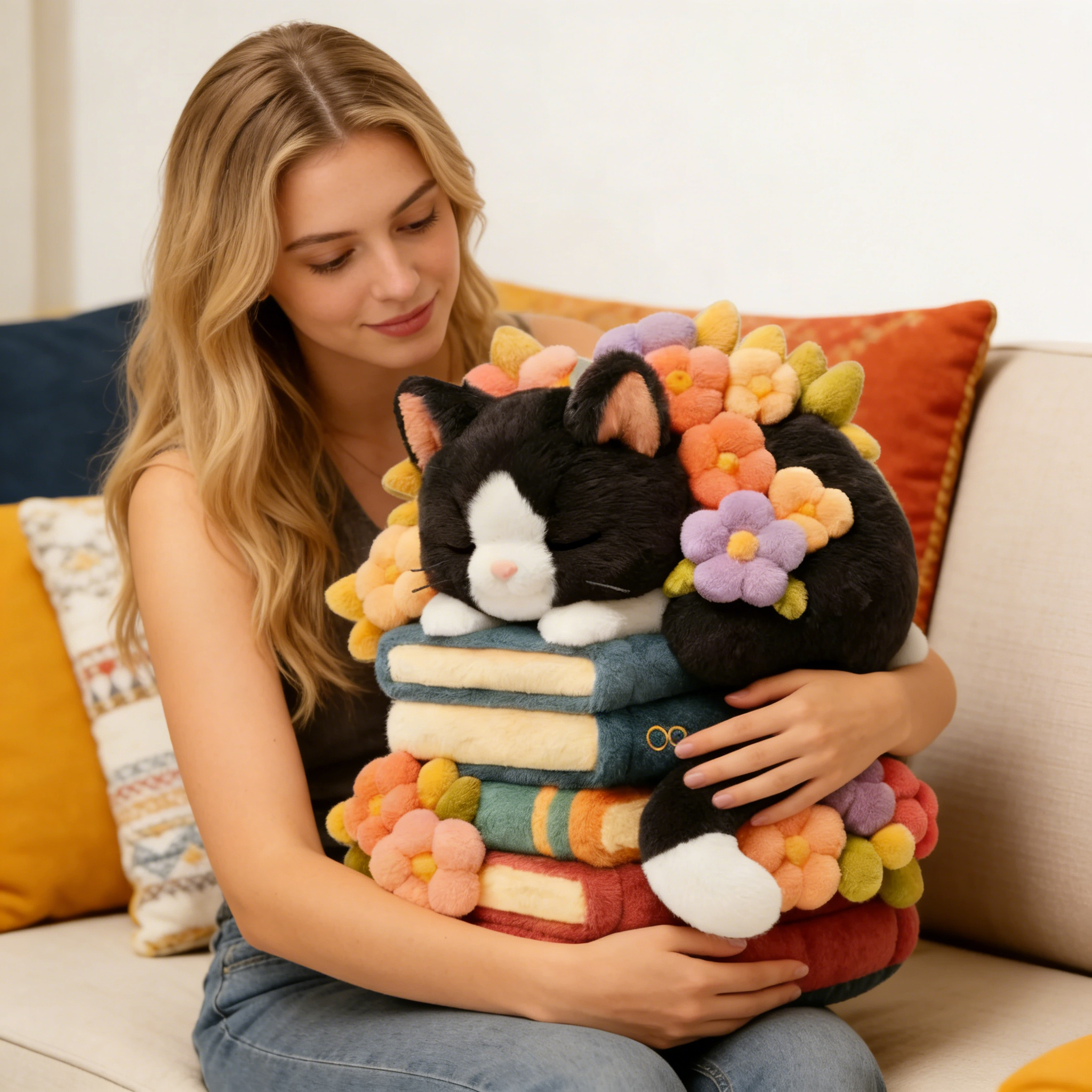 Cat With Books Custom Shaped Pillow - Personalized Gifts For Book Lover