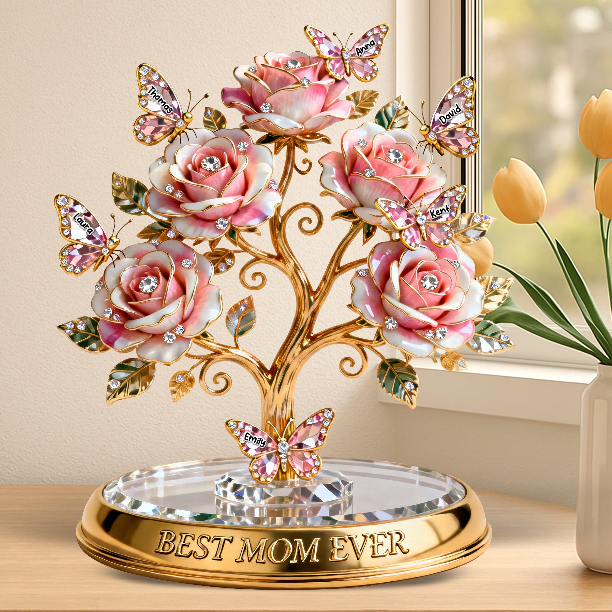 Family Tree Butterfly Rose Acrylic Plaque – Personalized Gifts For Mom